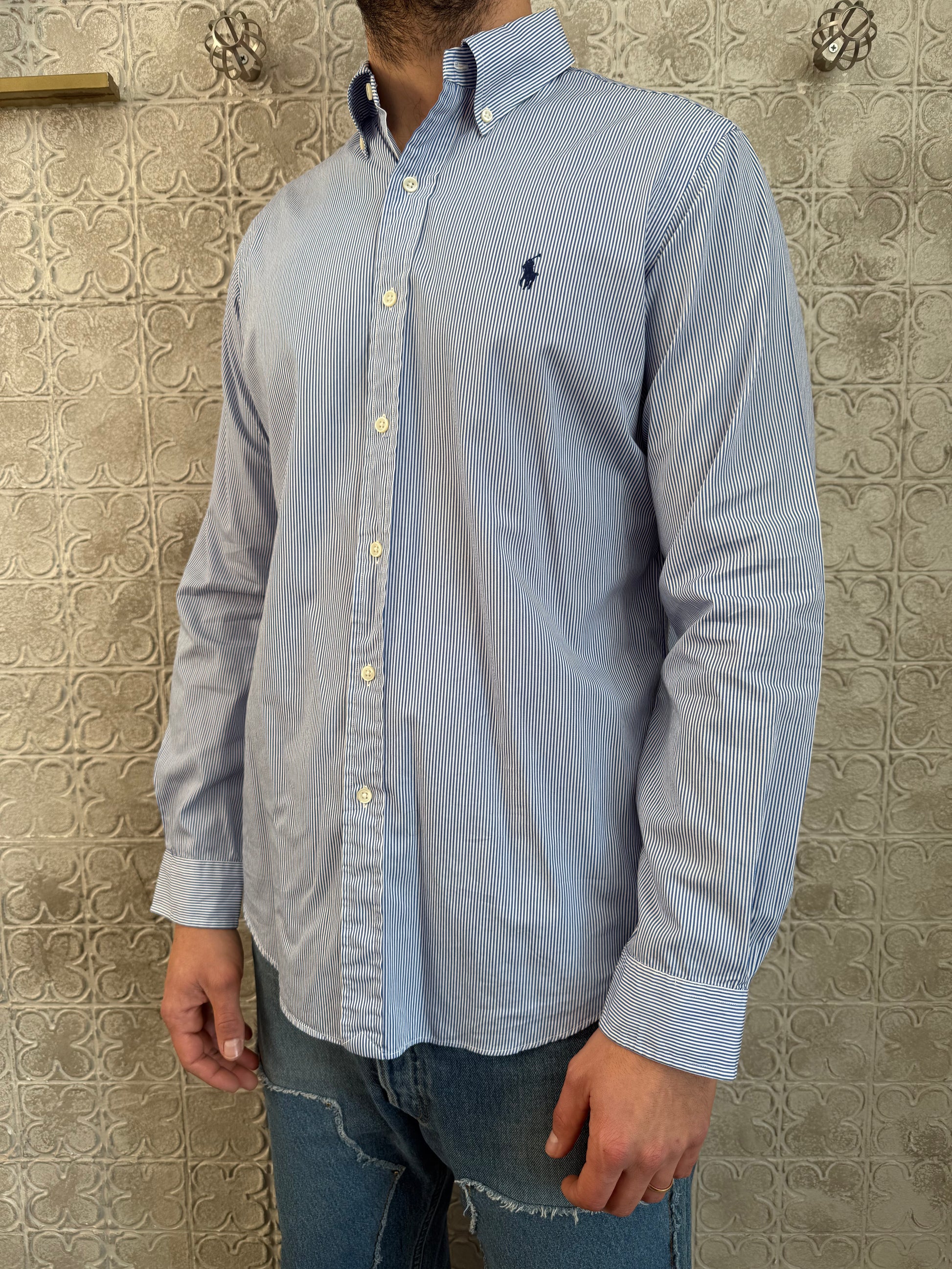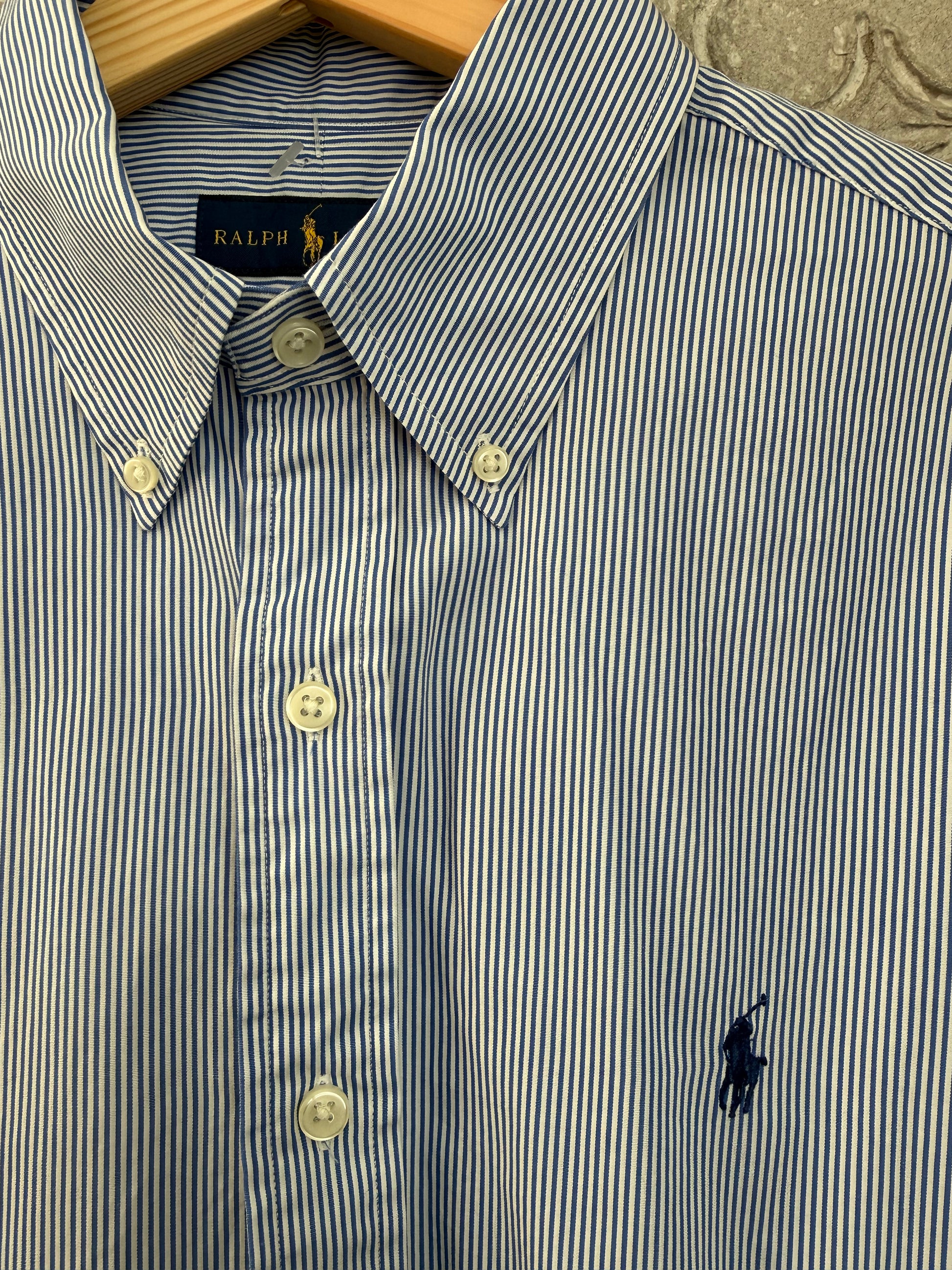 Camicia Ralph Lauren taglia M a righe bianca e blu taglia M in 100% cotone.